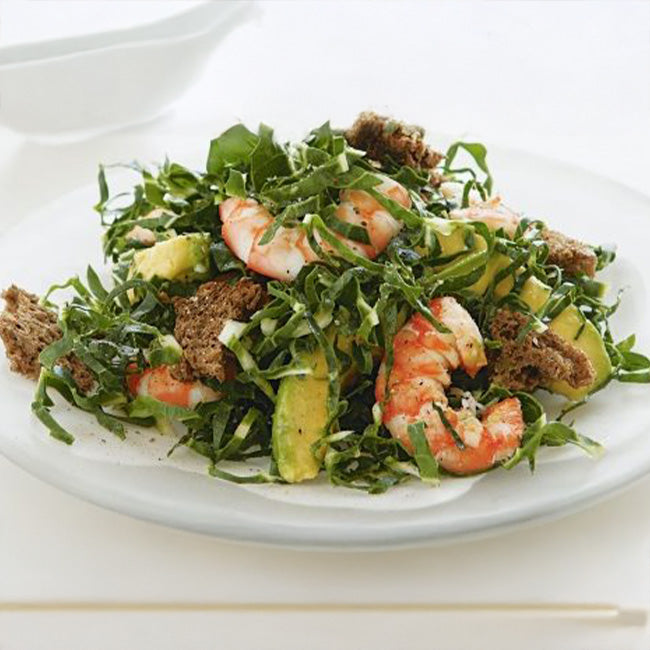 Halve, peel and deseed avocados. Thickly slice avocado flesh lengthways and place in a large bowl. Drizzle with lime juice...