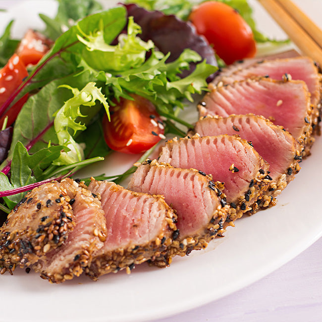 Spread each salmon steak with 1 teaspoon wasabi, roll in black sesame seeds. Barbeque or grill. Serve with a large...